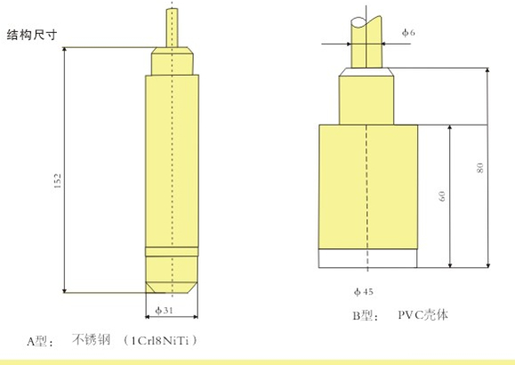 PT311型投入式液位變送器(也稱靜壓式液位變送器)選用進口帶防腐膜片敏感組件,將芯片裝入一個不銹鋼(或PVC)殼體內(nèi),頂部的鋼帽起保護傳感器膜片的作用,同時使液體流暢地接觸到膜片。該產(chǎn)品用特制的防水中空電纜使感壓膜片的背壓腔與大氣良好相通,測量液位不受外界大氣壓變化的影響,測量準確,長期穩(wěn)定性好,并具有優(yōu)良的密封及防腐性能,可直接投入水、油等液體中長期使用。PVC材料的外殼及電纜可測量多種防腐蝕性液體。